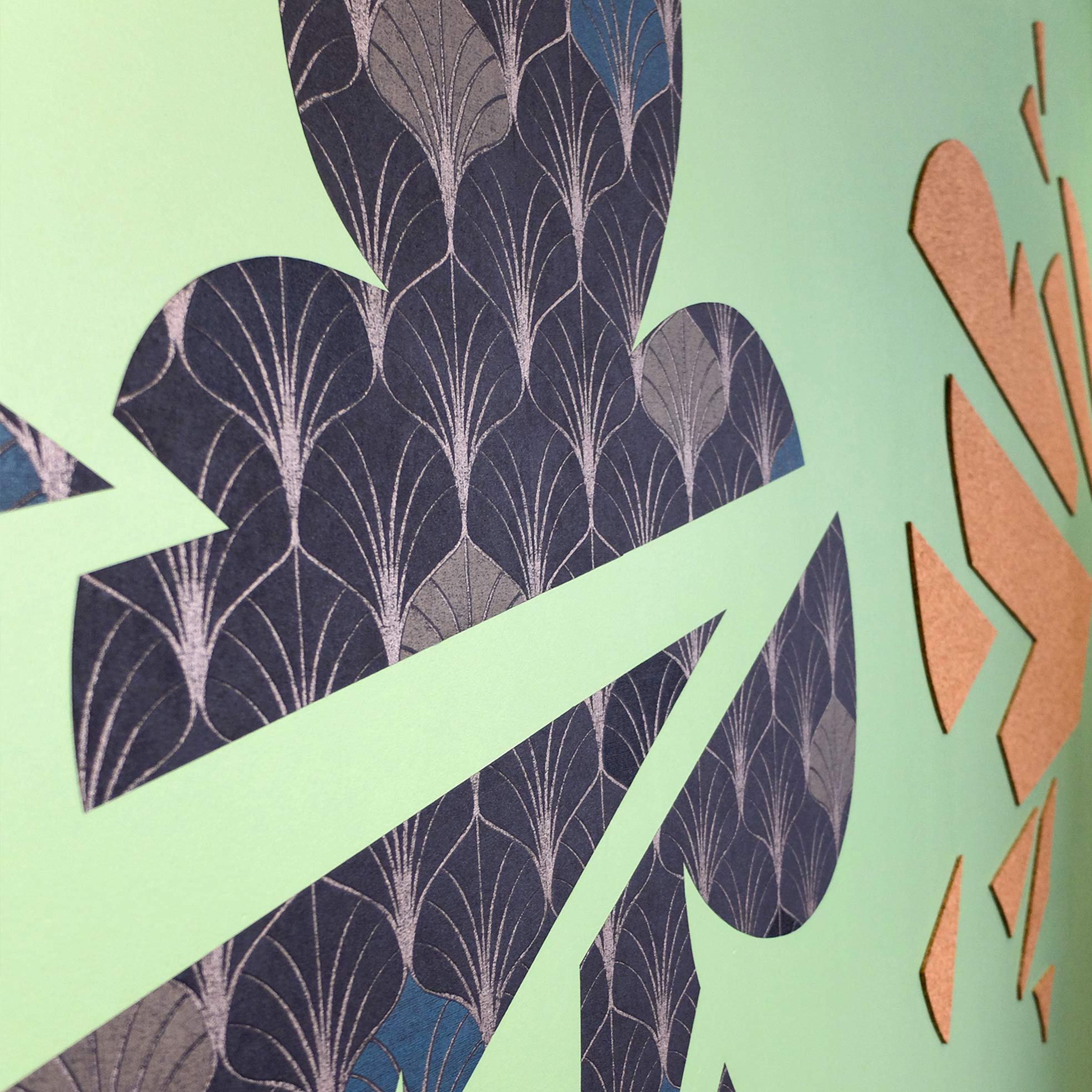 L’idée était également d’associer des textures, des matériaux pour chaque figure afin de ramener du détail, une ambiance, du volume et un « cachet ». Dans l’ordre: tapisserie, liège, bois et cuir.
